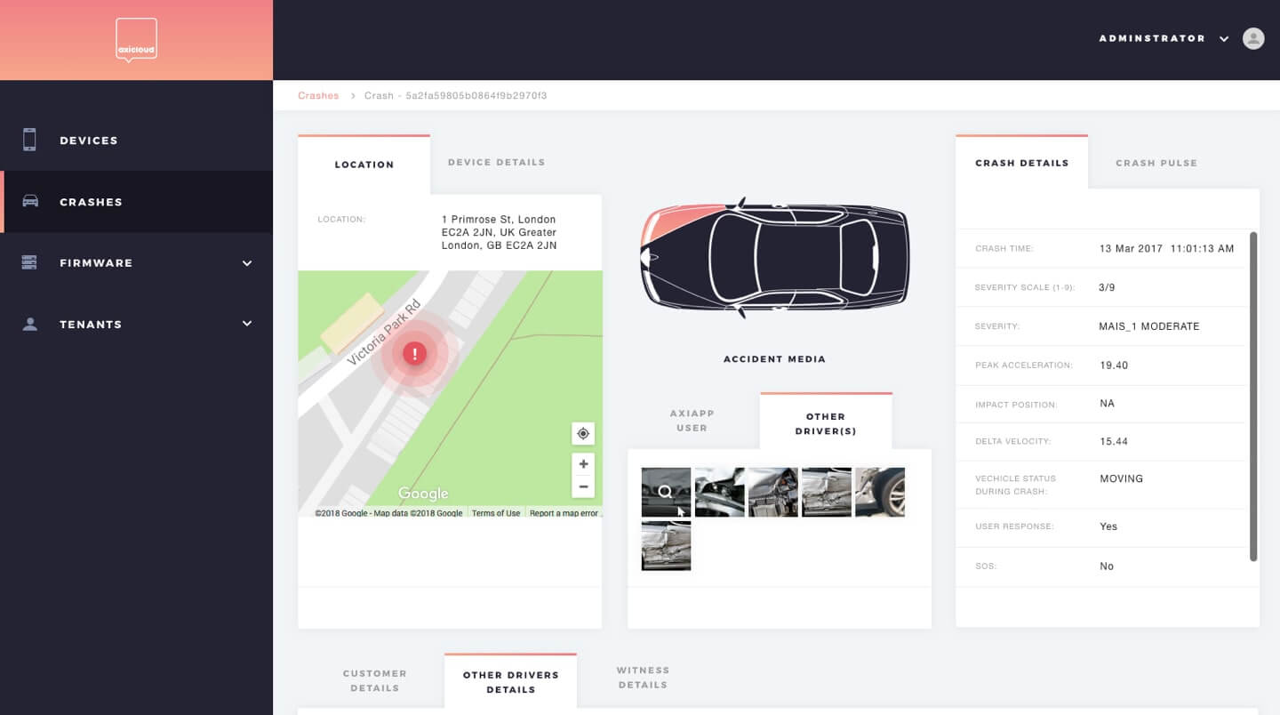 Larger design considerations had to be made for axicloud – connected crash management platform for insurers. The considerations were made specially to make the experience easier for users, so data consumption was far more legible, visually lighter and easily accessible.